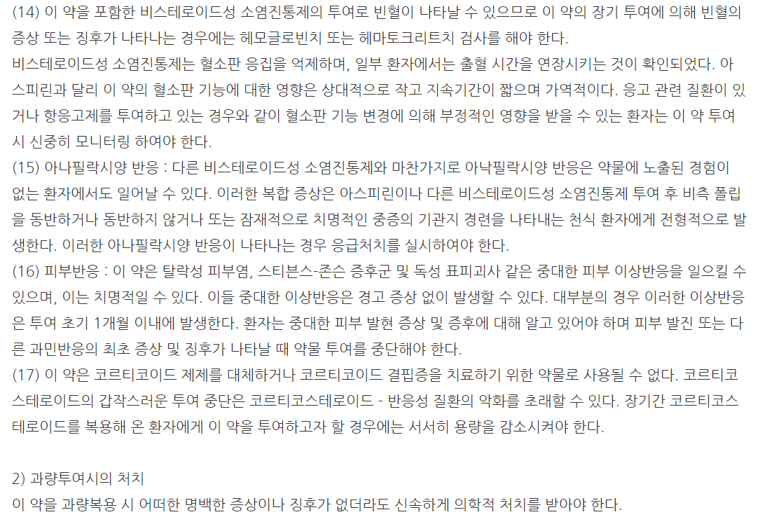 첨부해 드린 이미지 확인하셔서 신중한 투여 하시기 바래요.