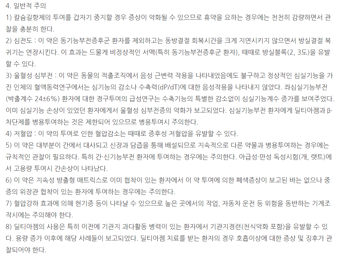 이제부터는 딜테란서방캡슐180mg 부작용, 이상반응, 주의사항에 대해 알아보도록 하겠습니다.