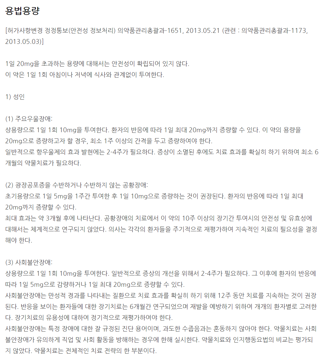 렉사프로정15mg 효능, 효과, 투여방법(복용법)