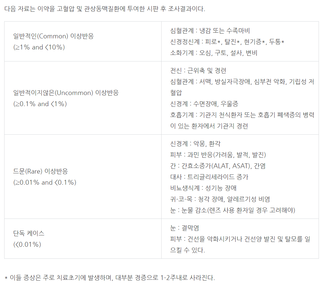반드시 이상반응과 부작용은 체크해야 합니다.