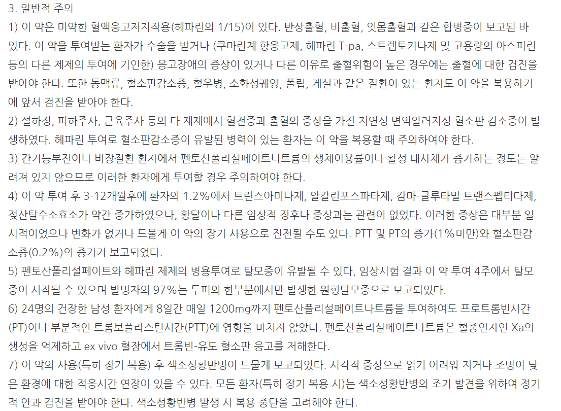 약의 성분은 펜토산폴리설페이트나트륨 100mg 포함되어 있다고 하니 참고하세요.