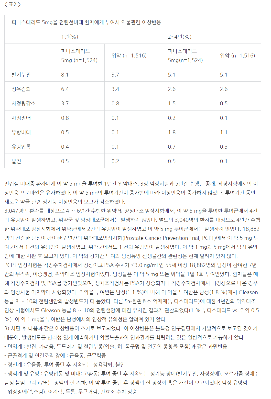 미노페시아정1mg 부작용, 이상반응, 주의사항