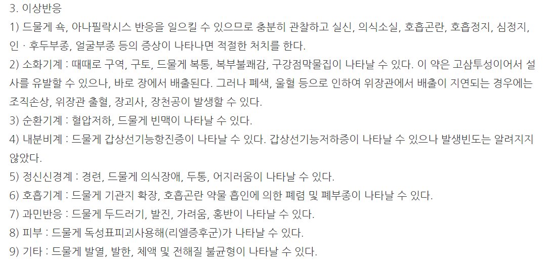 반드시 이상반응과 부작용은 체크해야 합니다.