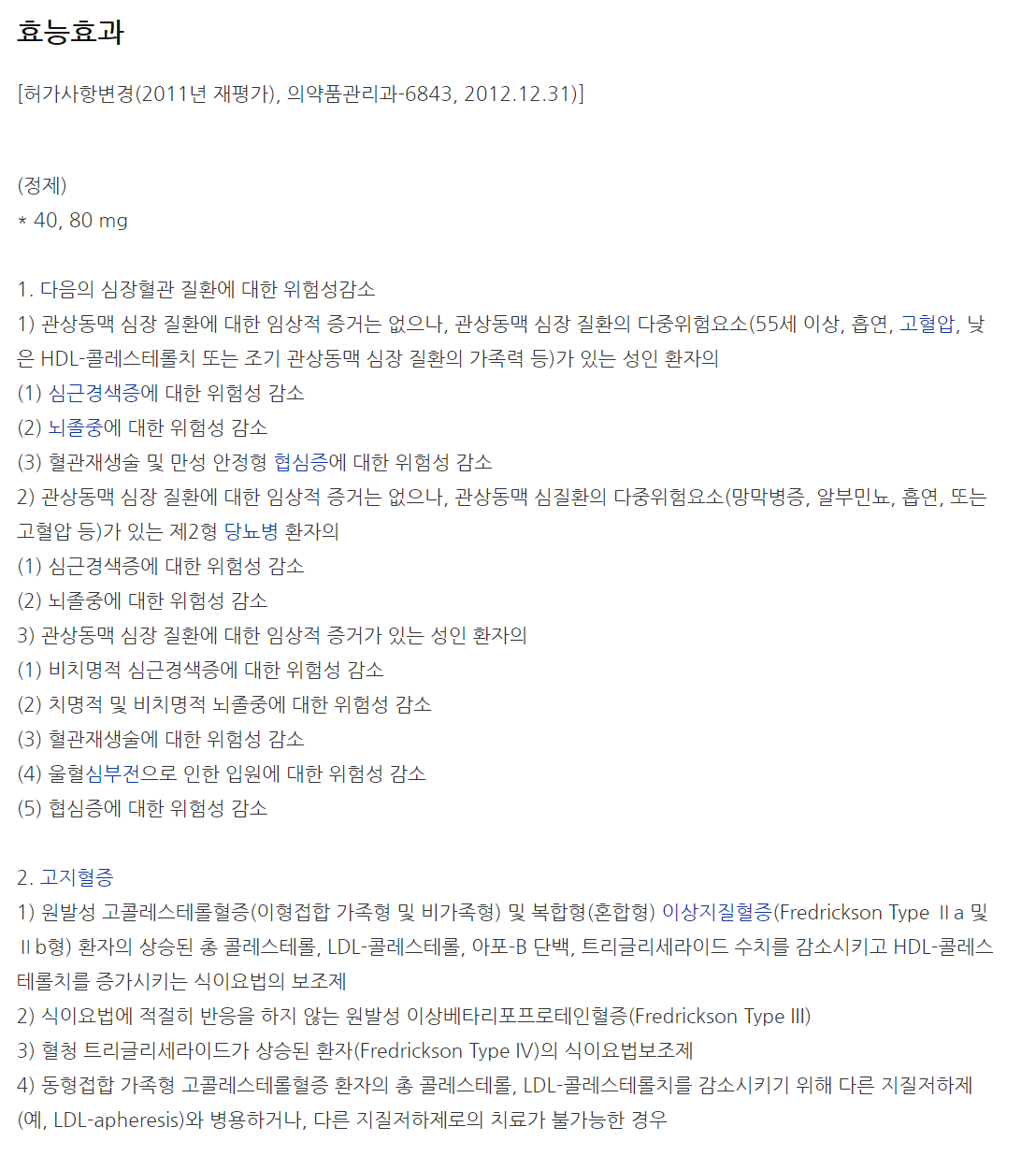 리피토정80mg 효능은 다양한 증상에 효능 및 효과가 있다고 합니다.