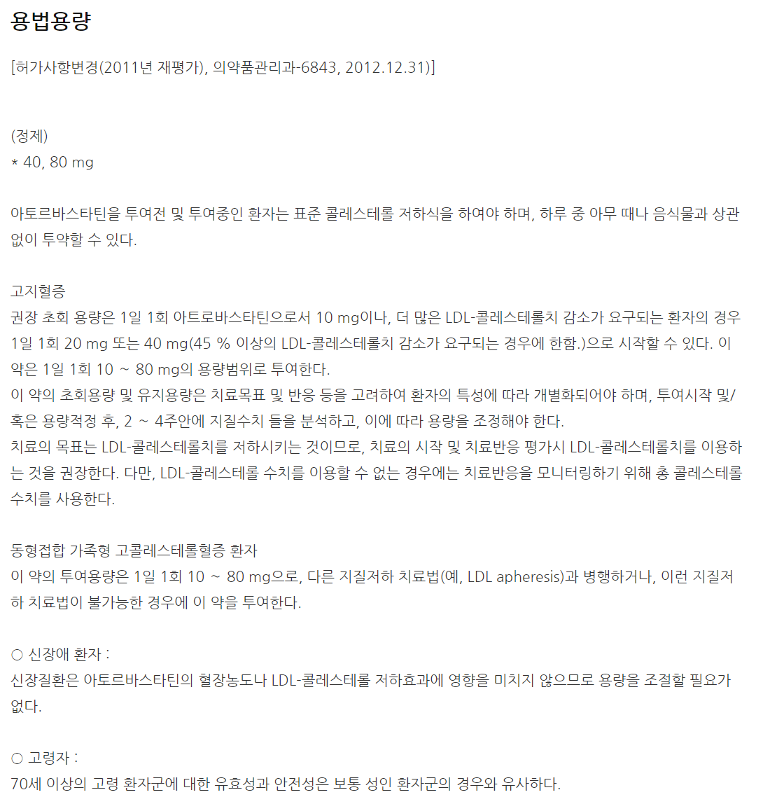 리피토정80mg 효능, 효과, 투여방법(복용법)