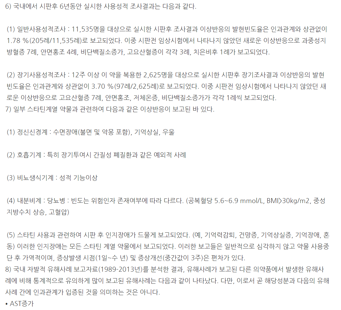 이제부터는 리피토정80mg 부작용, 이상반응, 주의사항에 대해 알아보도록 하겠습니다.