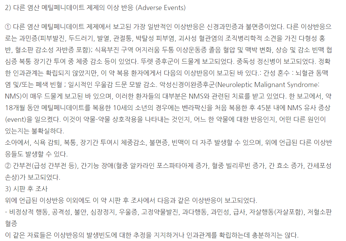 이제부터는 메타데이트CD서방캡슐30mg 부작용, 이상반응, 주의사항에 대해 알아보도록 하겠습니다.