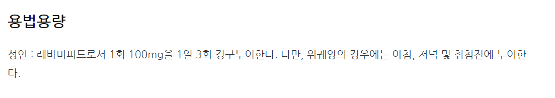 약의 성분은 레바미피드 100mg 포함되어 있다고 하니 참고하세요.