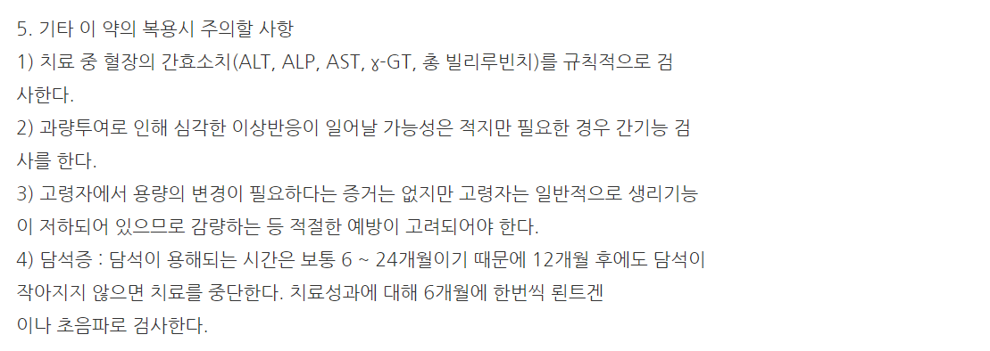 약의 성분은 우르소데옥시콜산 100mg 포함되어 있다고 하니 참고하세요.