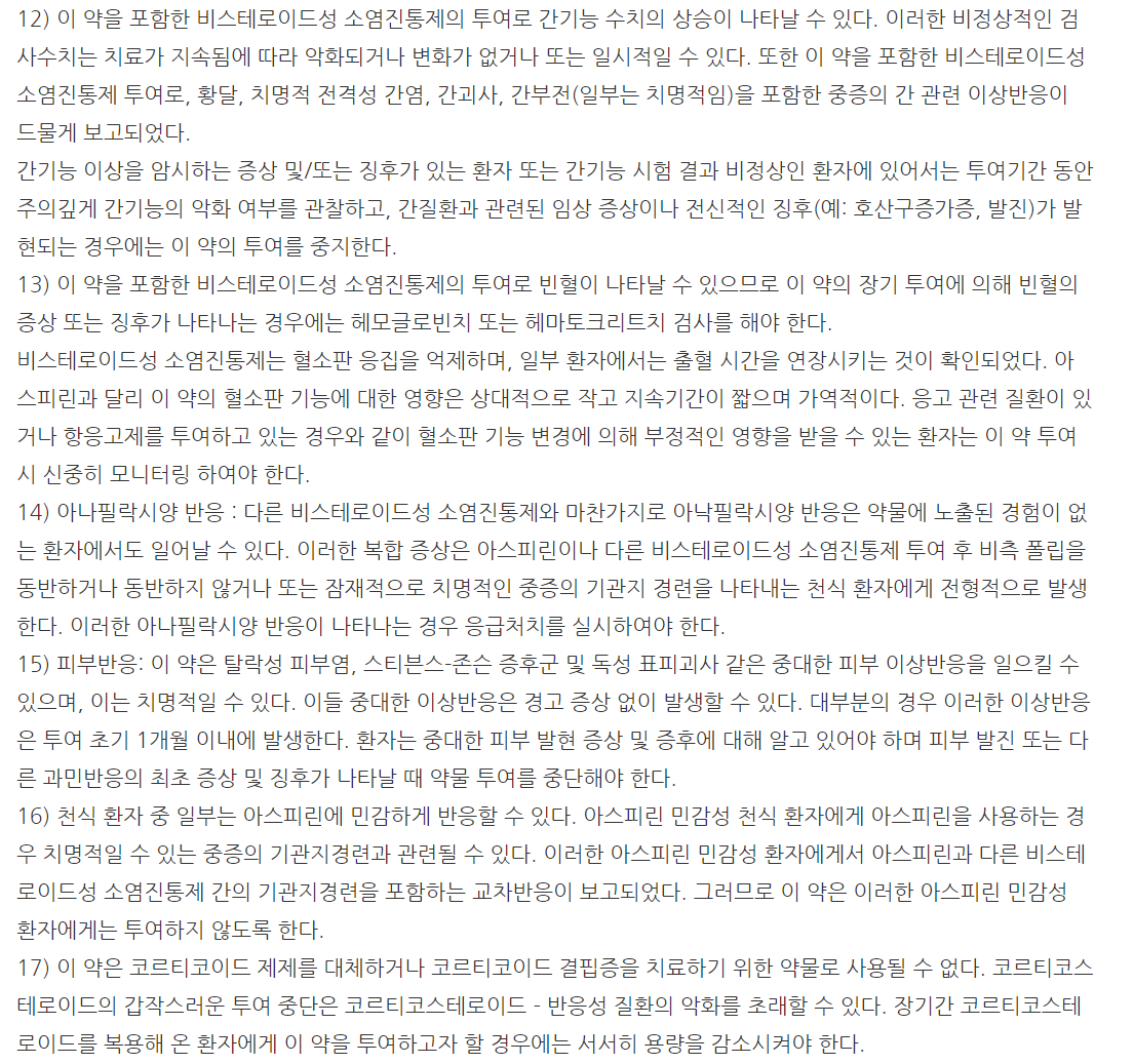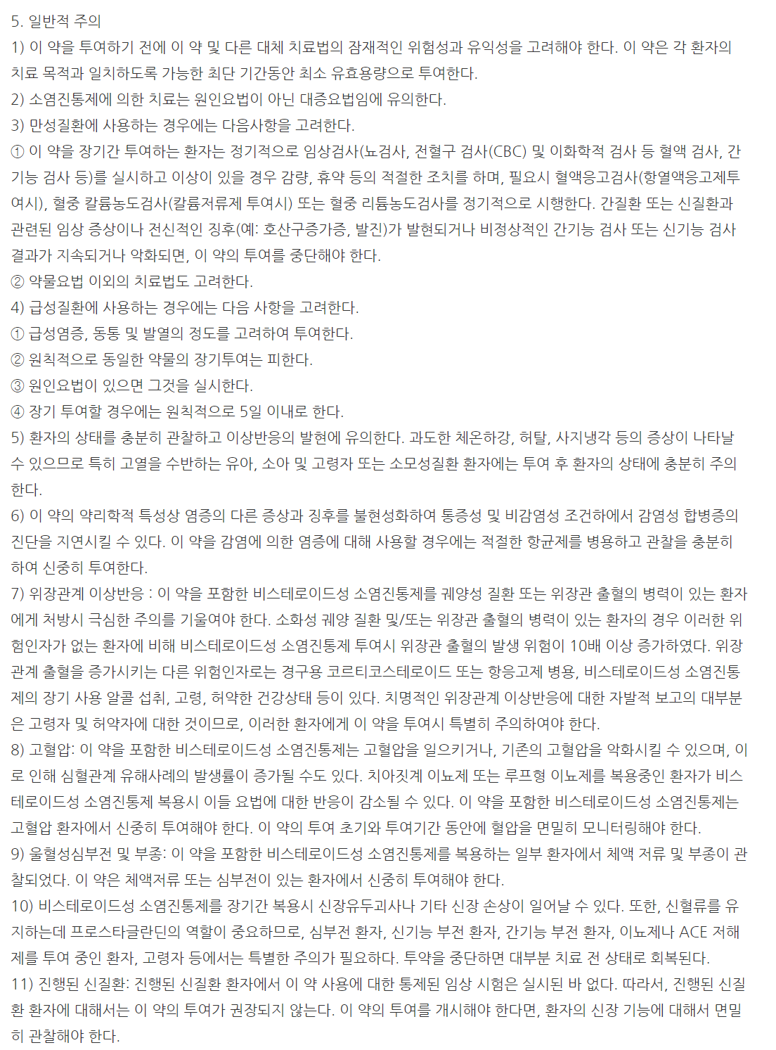 첨부해 드린 이미지 확인하셔서 신중한 투여 하시기 바래요.