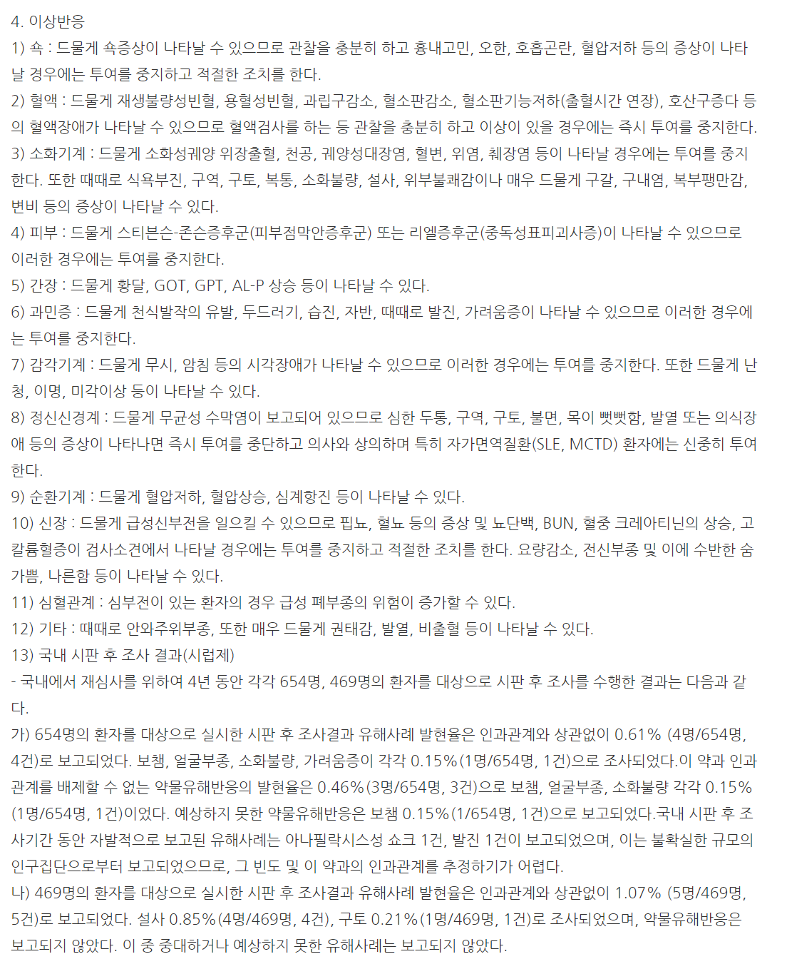 반드시 이상반응과 부작용은 체크해야 합니다.