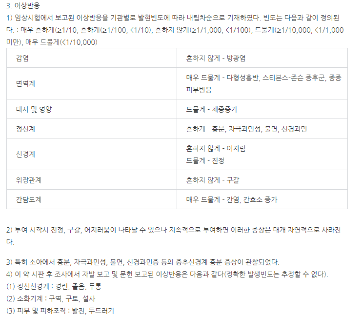 반드시 이상반응과 부작용은 체크해야 합니다.