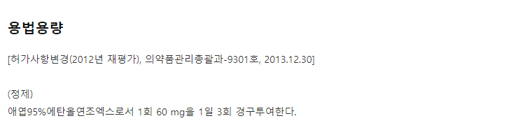 약의 성분은 애엽95%에탄올연조엑스(20→1) 60mg 포함되어 있다고 하니 참고하세요.