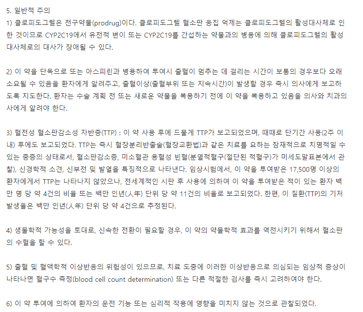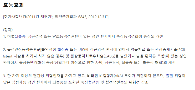 약의 성분은 클로피도그렐황산수소염 97.875mg 포함되어 있다고 하니 참고하세요.