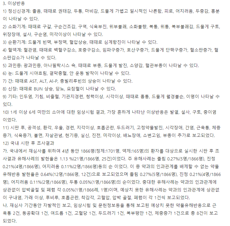 반드시 이상반응과 부작용은 체크해야 합니다.