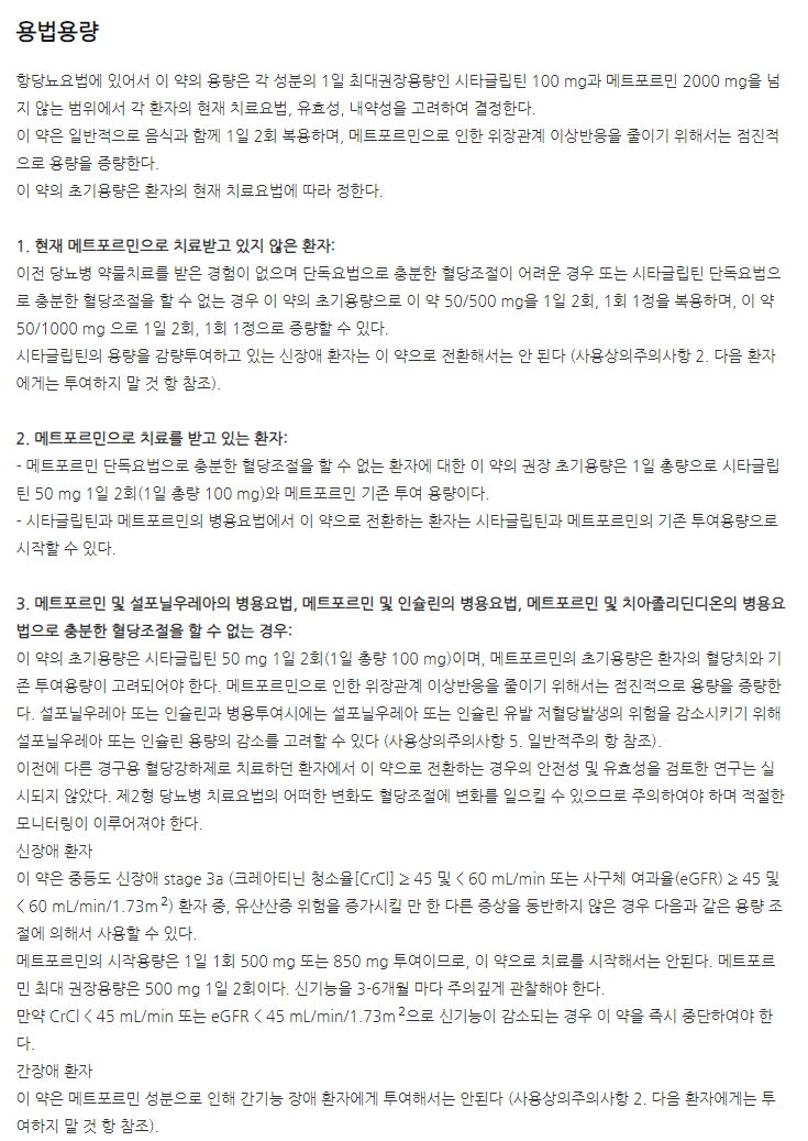지금까지 위에서 자누메트정50/1000mg 효능, 효과, 투여방법(복용법)에 대해 상세히 알아보았는데요.