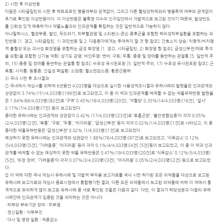 이제부터는 자누메트정50/1000mg 부작용, 이상반응, 주의사항에 대해 알아보도록 하겠습니다.