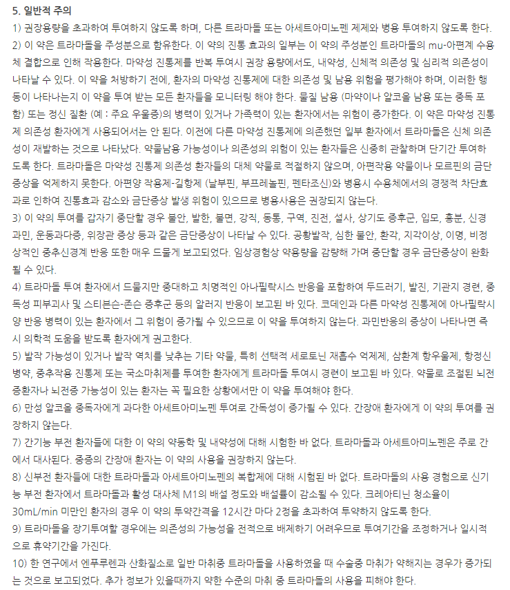 약의 성분은 아세트아미노펜 325.0mg, 트라마돌염산염 37.5mg 포함되어 있다고 하니 참고하세요.