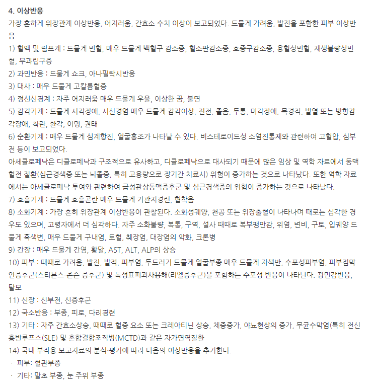 반드시 이상반응과 부작용은 체크해야 합니다.