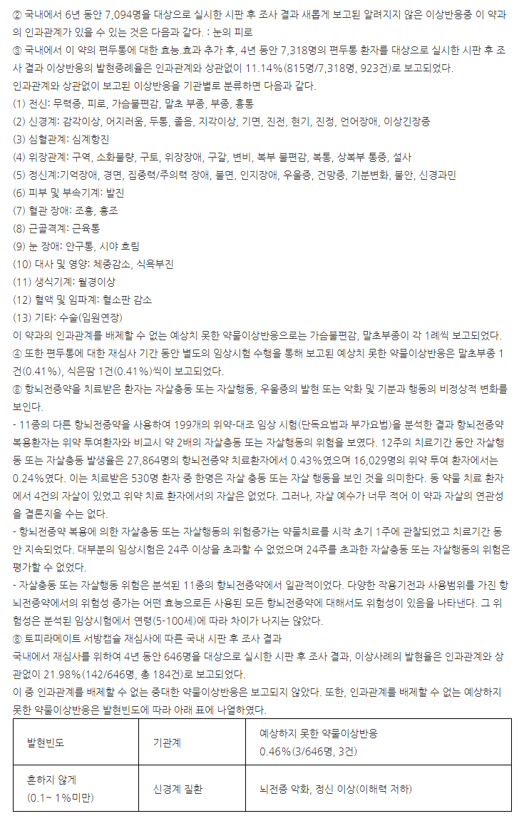 이제부터는 유니토파정 부작용, 이상반응, 주의사항에 대해 알아보도록 하겠습니다.