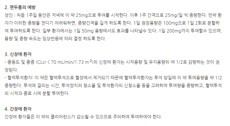 3) 편두통 예방 : 이 약은 임부 및 매우 효과적인 피임법을 사용하고 있지 않는 가임기 여성에게 편두통 예방 목적으로 투여하지 않는다.