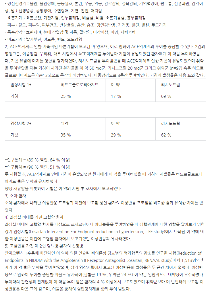 이제부터는 코자릴정 부작용, 이상반응, 주의사항에 대해 알아보도록 하겠습니다.