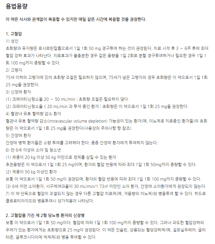 약의 성분은 로사르탄칼륨 50.00mg 포함되어 있다고 하니 참고하세요.
