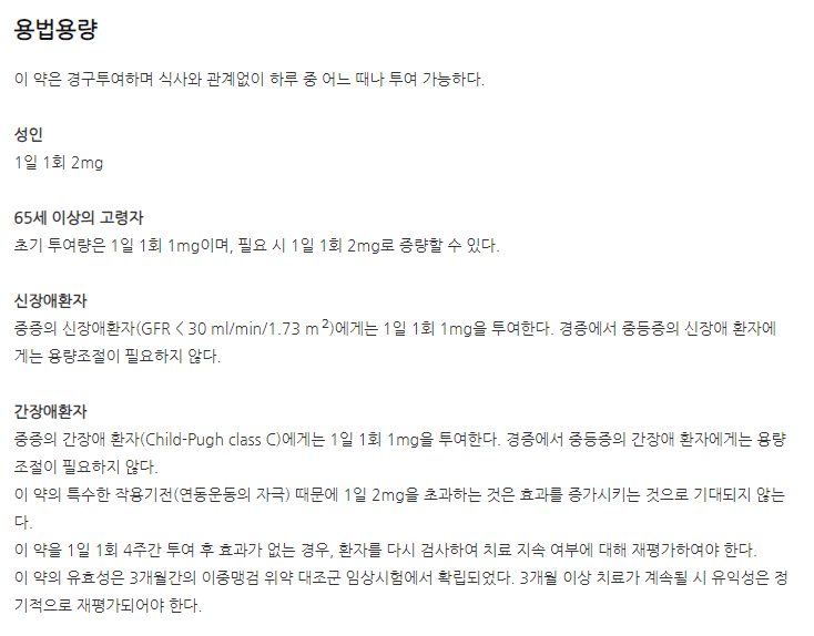 유니칼로정2mg 효능, 효과, 투여방법(복용법)