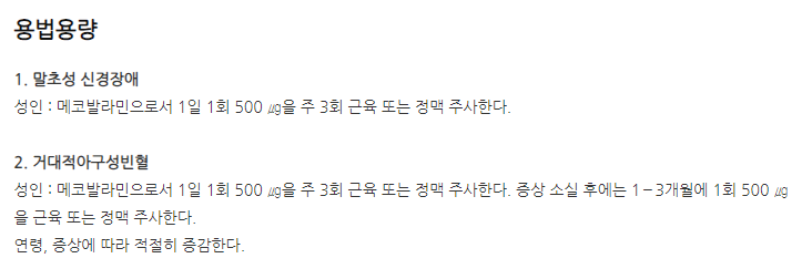 약의 성분은 메코발라민 0.5mg 포함되어 있다고 하니 참고하세요.