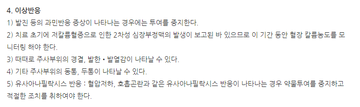 첨부해 드린 이미지 확인하셔서 신중한 투여 하시기 바래요.