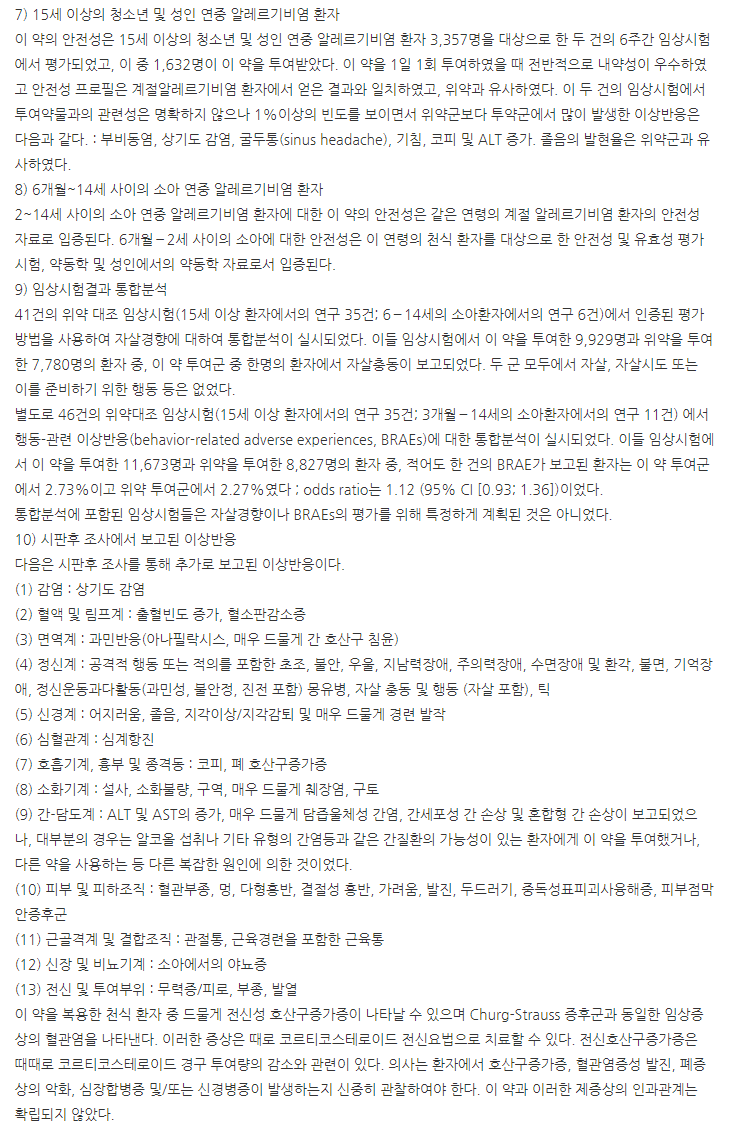 이제부터는 싱귤라츄정4mg 부작용, 이상반응, 주의사항에 대해 알아보도록 하겠습니다.