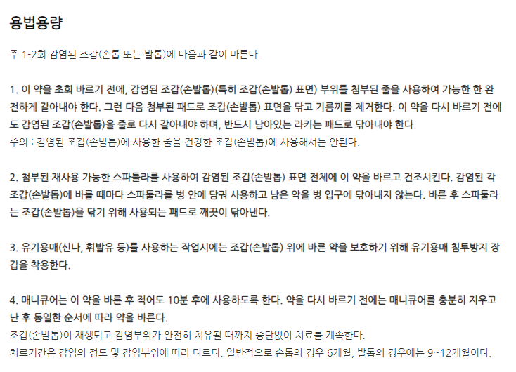 약의 성분은 아모롤핀염산염 5.574g 포함되어 있다고 하니 참고하세요.