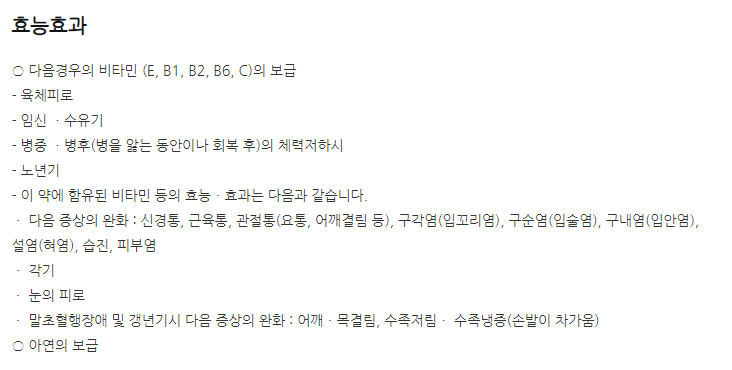 비타허브정 효능, 효과, 투여방법(복용법)
