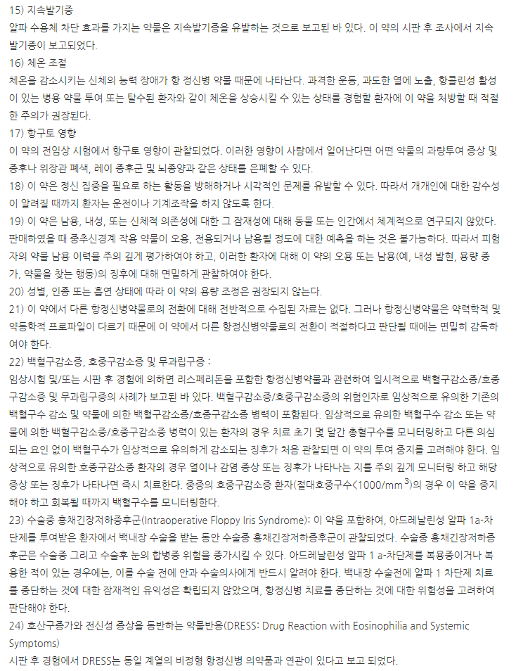 첨부해 드린 이미지 확인하셔서 신중한 투여 하시기 바래요.