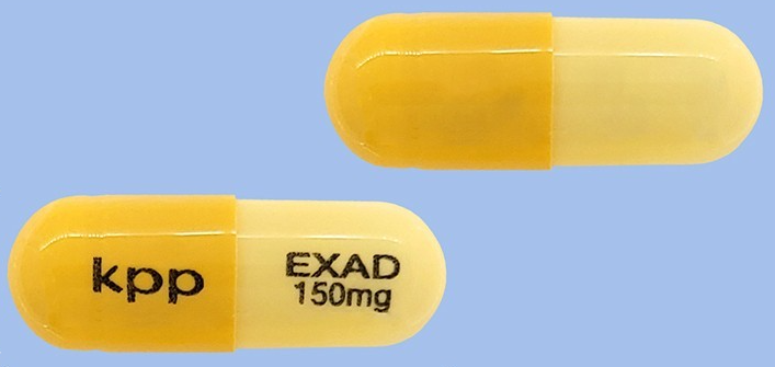 엑사드캡슐은 외형적으로 흰색~회백색의 분말을 충진한 상부 황색, 하부 담황색의 경질캡슐제로 되어있는 의약품입니다.