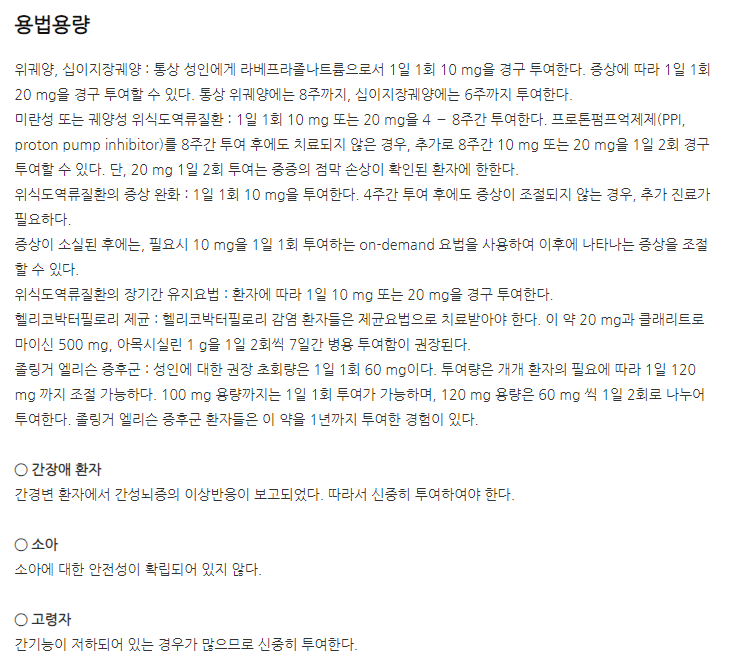 약의 성분은 라베프라졸나트륨 mg 포함되어 있다고 하니 참고하세요.