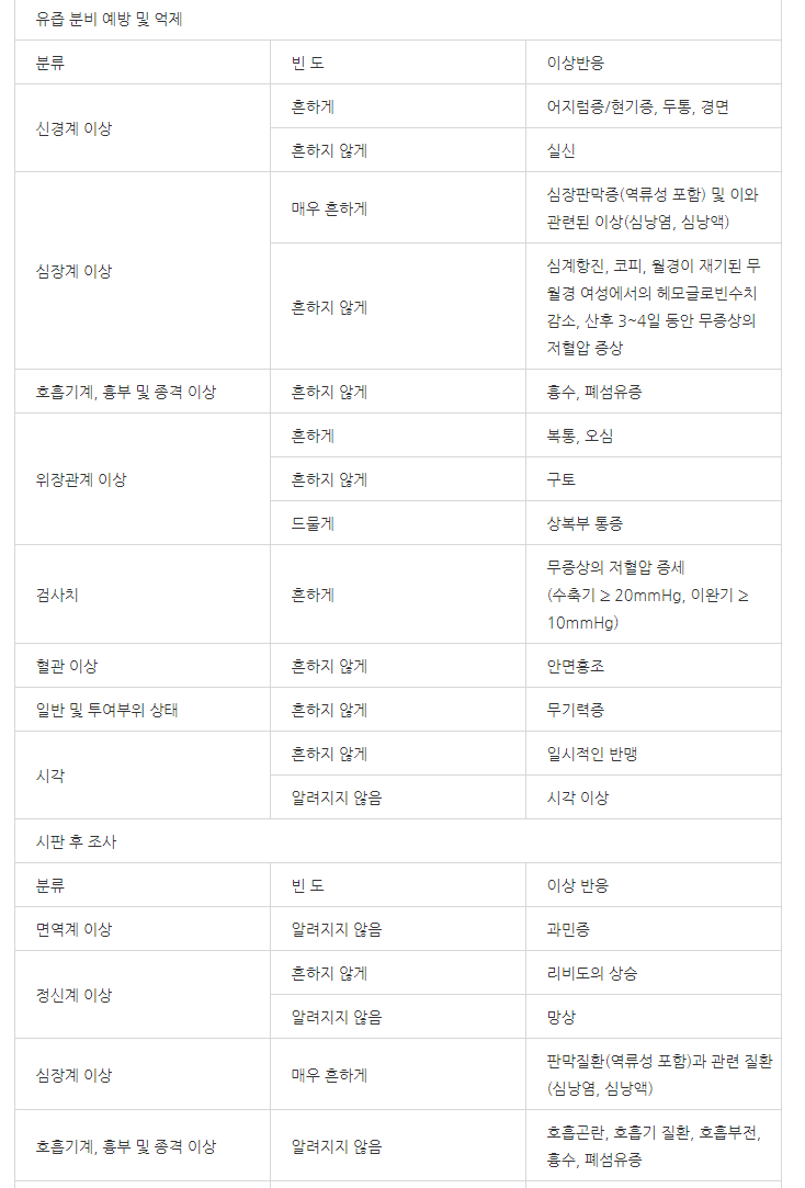 위와 같은 증상이 있는 분들이나 문제가 될 여지가 있는 분들은 투여를 금지해주시기 바랍니다.