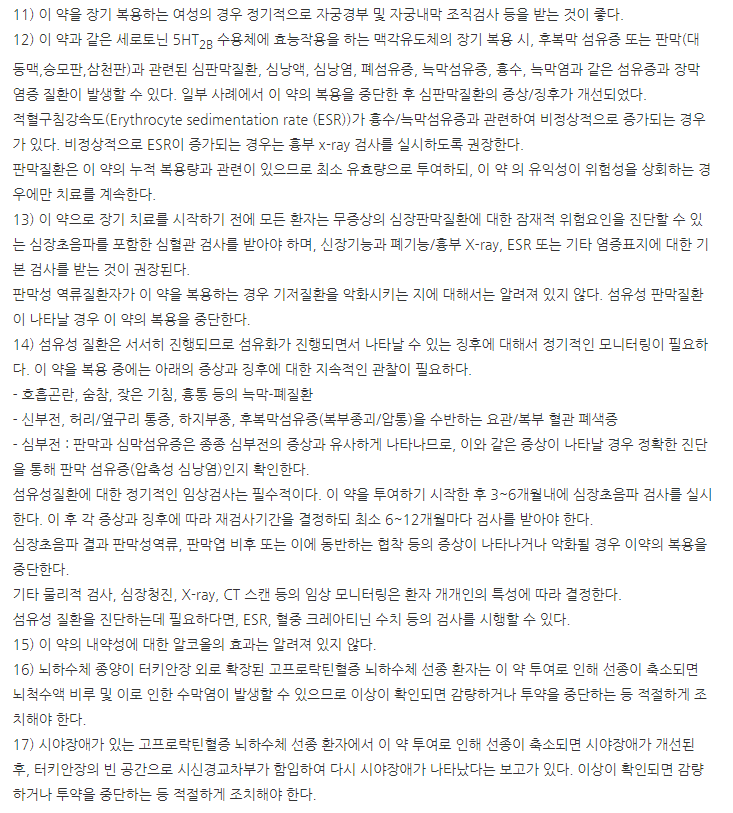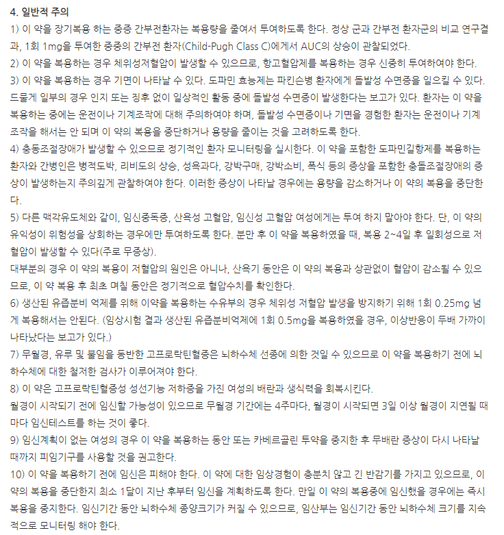이제부터는 카버락틴정0.25mg 부작용, 이상반응, 주의사항에 대해 알아보도록 하겠습니다.