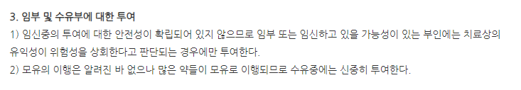 위와 같은 증상이 있는 분들이나 문제가 될 여지가 있는 분들은 투여를 금지해주시기 바랍니다.