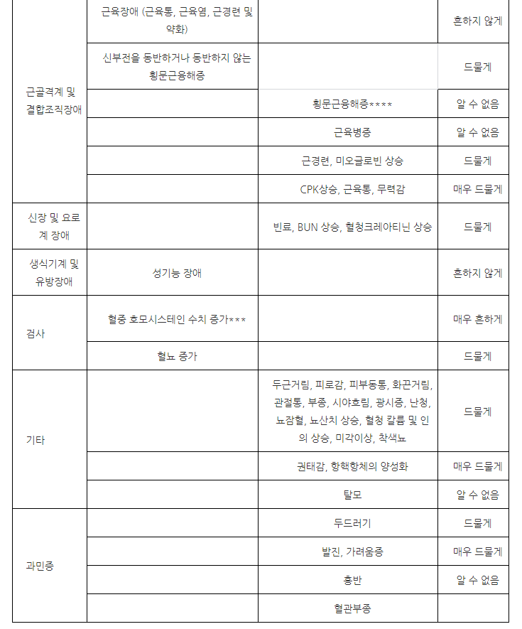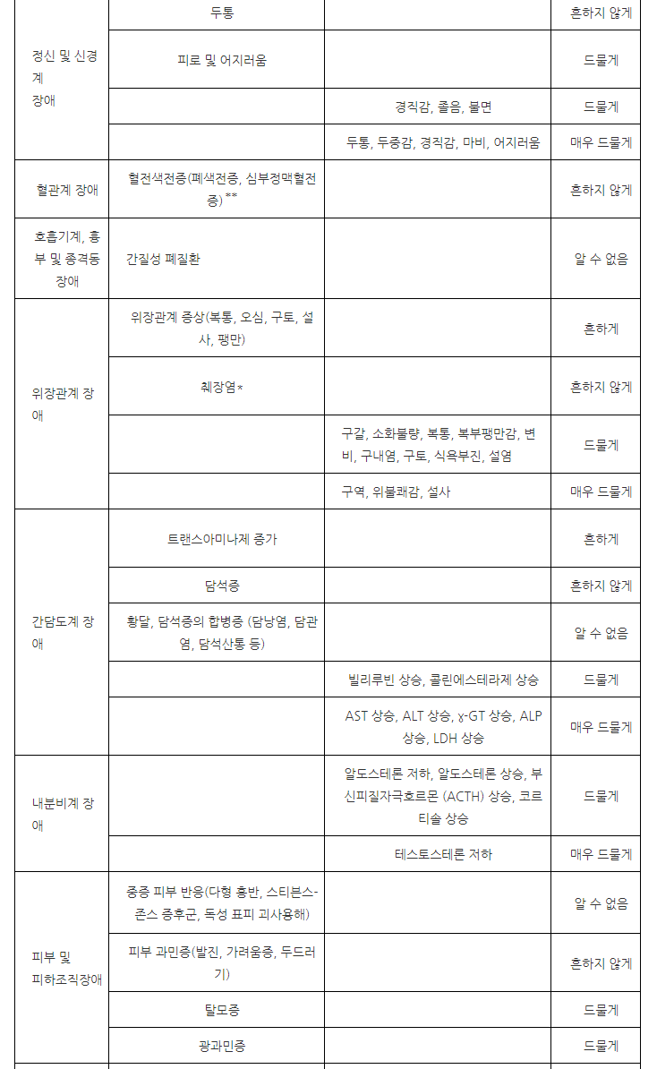 약의 이상반응, 부작용은 아래와 같습니다.