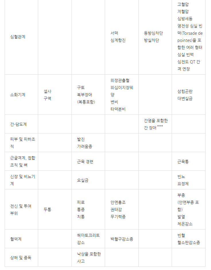 약의 이상반응, 부작용은 아래와 같습니다.