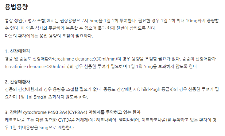 솔리프로정5mg 효능, 효과, 투여방법(복용법)