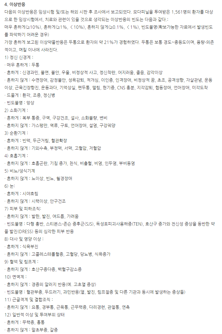 반드시 이상반응과 부작용은 체크해야 합니다.