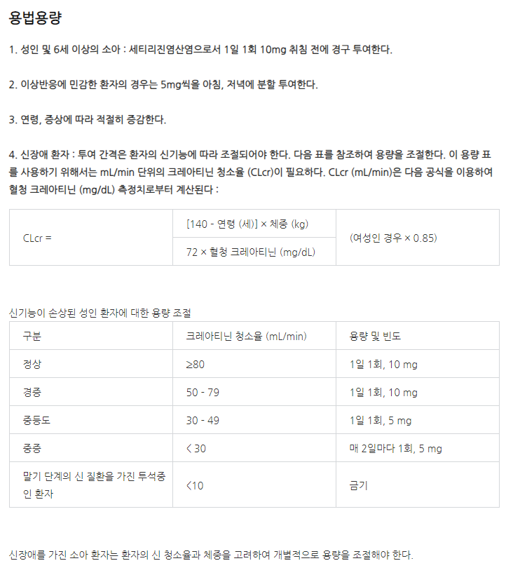 약의 성분은 세티리진염산염 10.0mg 포함되어 있다고 하니 참고하세요.
