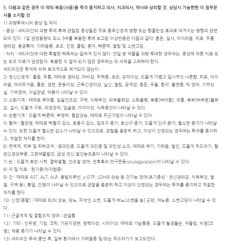 이제부터는 세리노즈정 부작용, 이상반응, 주의사항에 대해 알아보도록 하겠습니다.