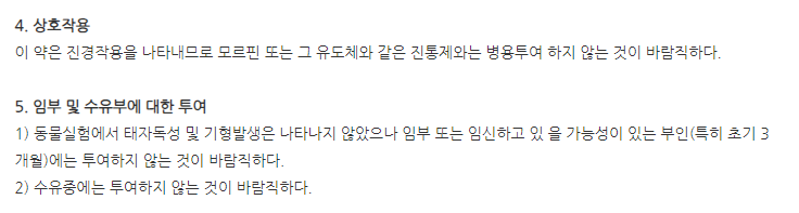 위와 같은 증상이 있는 분들이나 문제가 될 여지가 있는 분들은 투여를 금지해주시기 바랍니다.