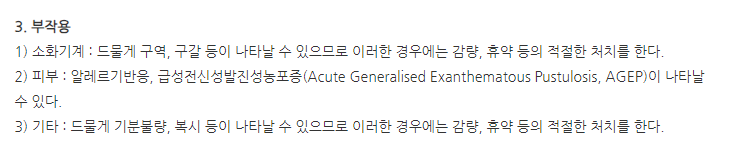 첨부해 드린 이미지 확인하셔서 신중한 투여 하시기 바래요.