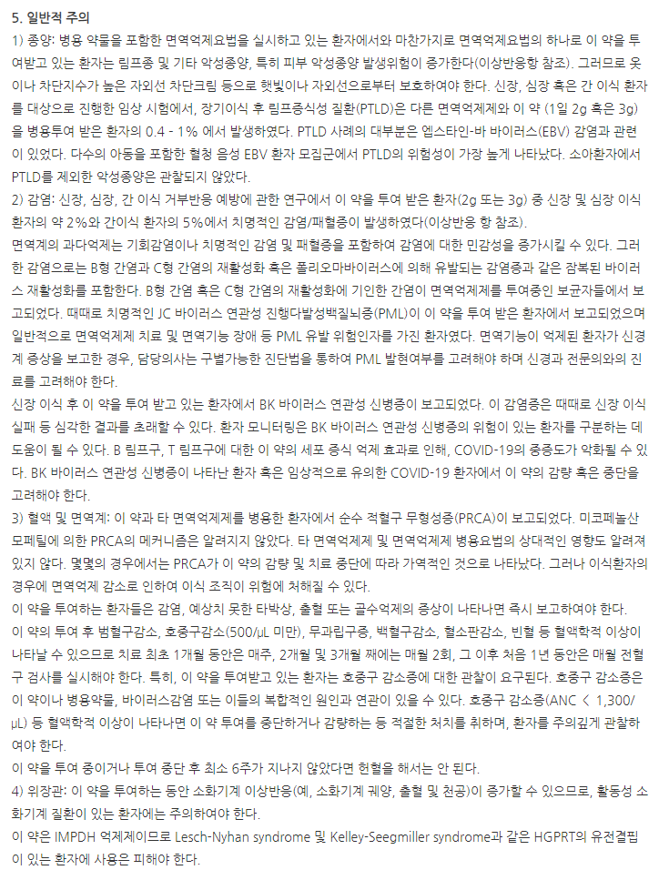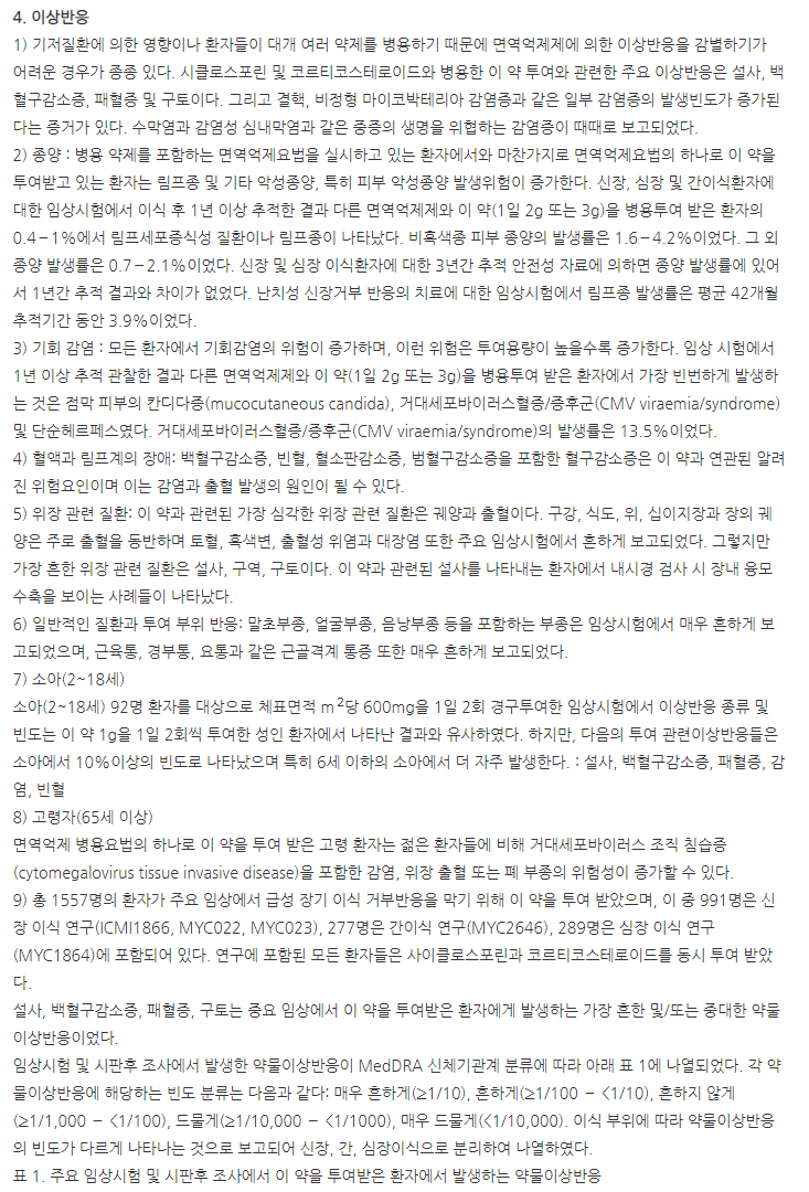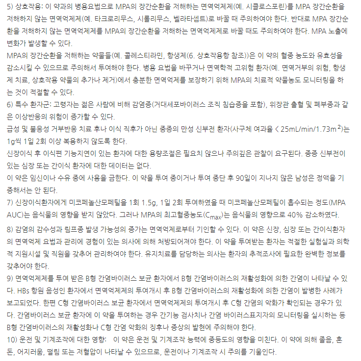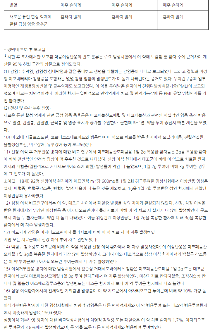 약의 성분은 미코페놀레이트모페틸 250mg 포함되어 있다고 하니 참고하세요.