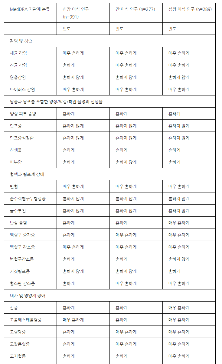 약의 이상반응, 부작용은 아래와 같습니다.