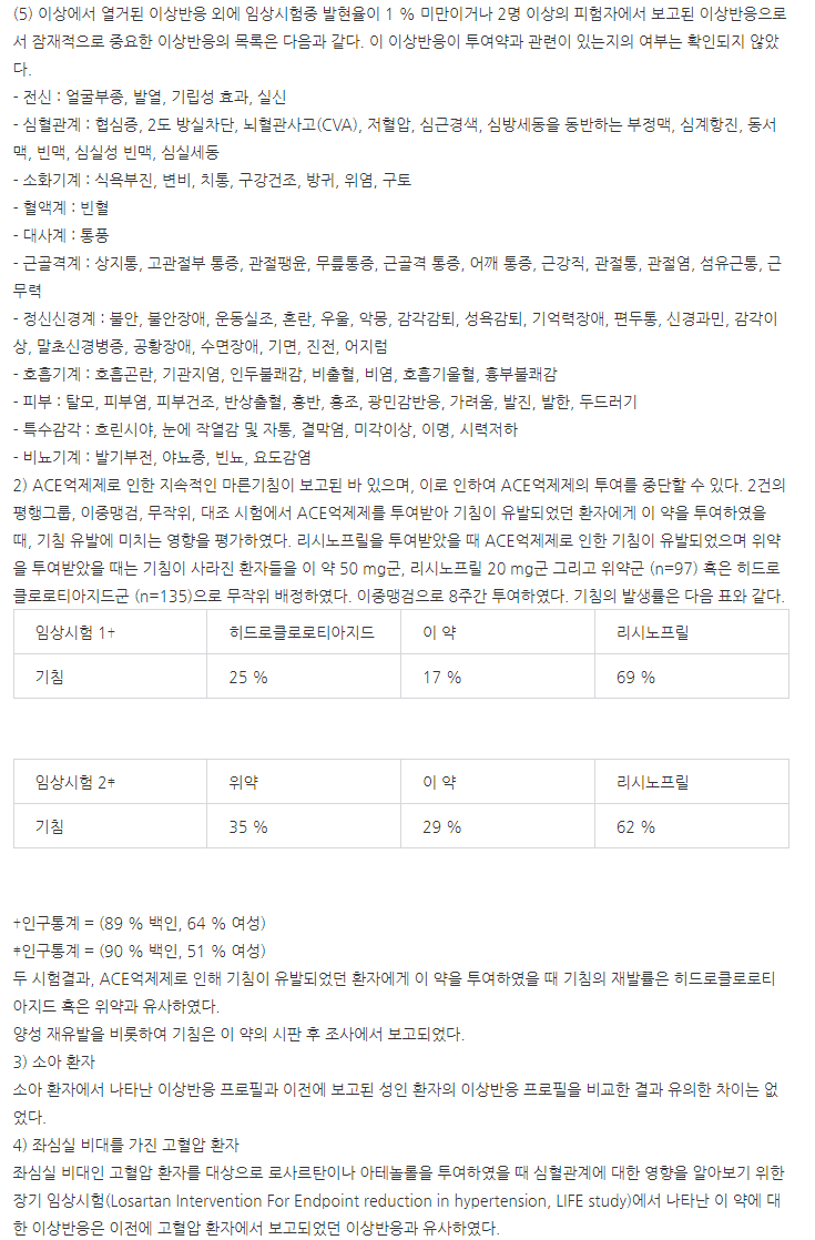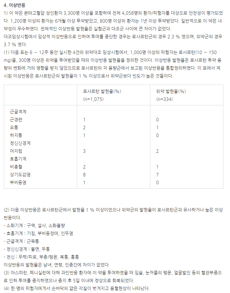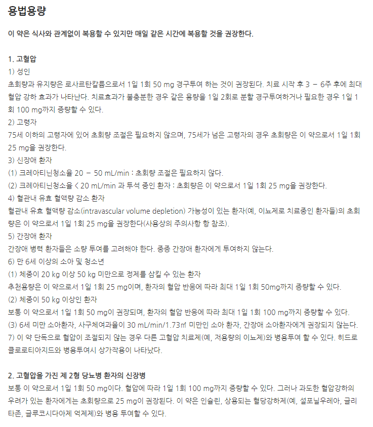 약의 성분은 로사르탄칼륨 50.0mg 포함되어 있다고 하니 참고하세요.